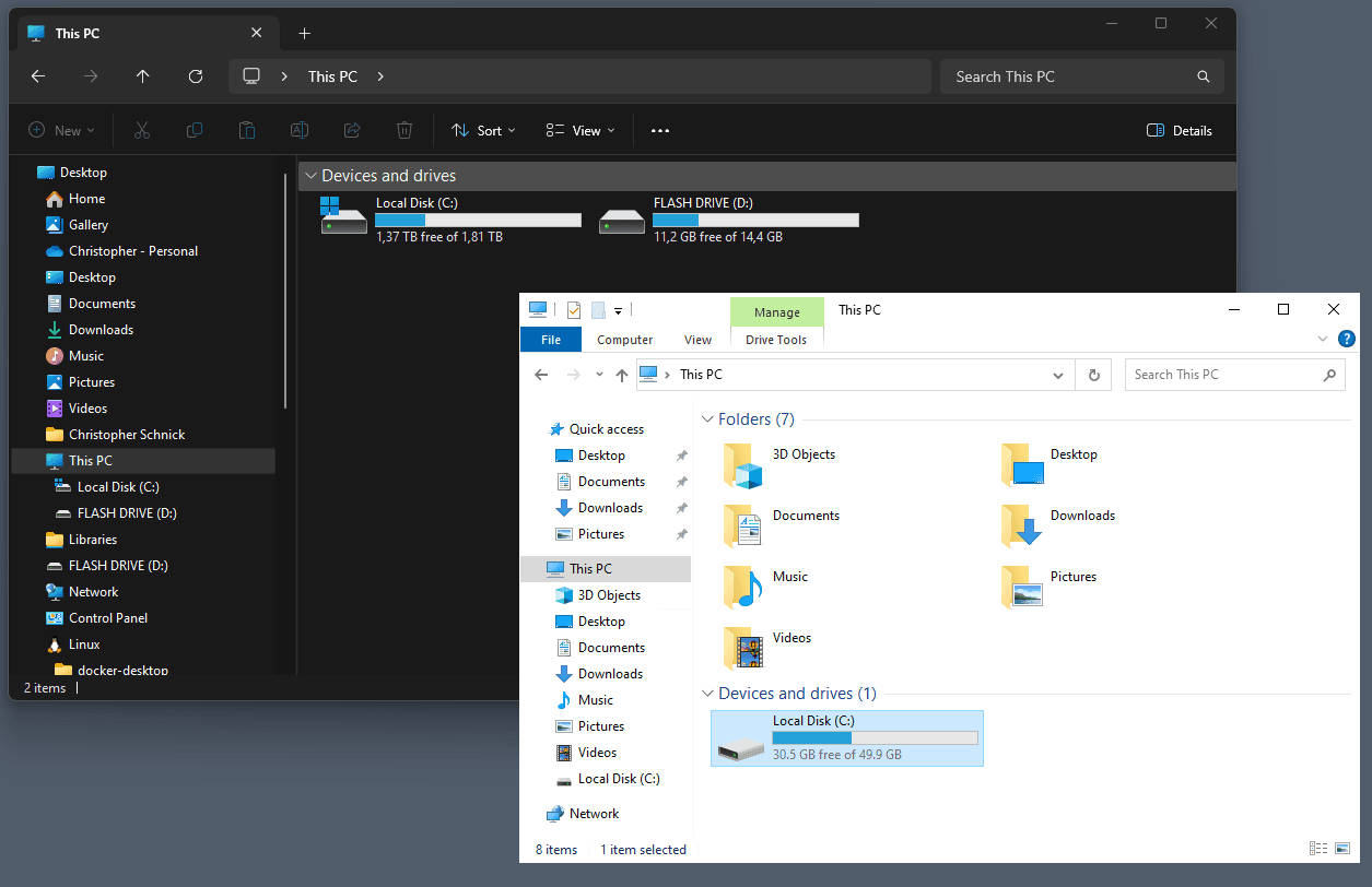 Here is how a remote file explorer looks like next to a locally running one: