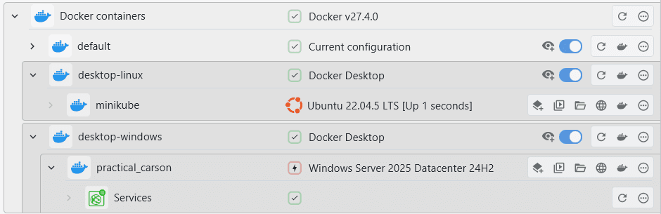 A docker installation can have multiple contexts. Contexts allow you to have multiple different configurations available on one system. XPipe can detect all available contexts and switch between them dynamically.