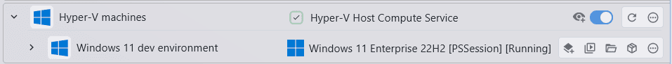 XPipe supports connecting to and managing your Hyper-V VMs running on a Windows host. For that it uses the Hyper-V PowerShell tools available on a system. Adding the host system as a connection to XPipe, usually via SSH, and then searching for available connections on the added system will make Hyper-V VMs show up.