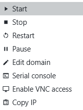 KVM VMs support VNC, assuming that the domain configuration includes a VNC display. If you click on Enable VNC access in a VM context menu, you will either get a VNC connection entry or an error message about VNC not being configured yet.