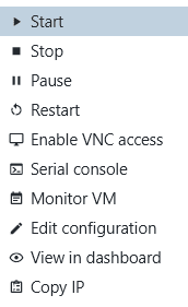 Once set up, you can enter this serial console in the connection context menu for the VM: