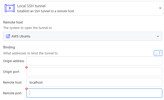If you are looking for a more user-friendly experience for tunnels, check out services instead. Raw SSH local tunnels it only makes sense to use instead of services if you want to use more advanced tunnel bindings.
