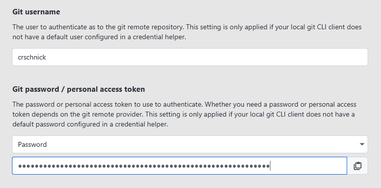 There are multiple ways to authenticate. Most repositories use HTTPS where you have to specify a username and password. Some providers also support the SSH protocol, which is also supported by XPipe. If you use an SSH URL for git, you probably know how to configure it, so this section will cover HTTPS only.