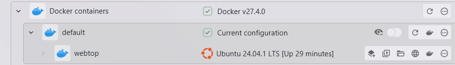 If you want to have access to the system shell of the webtop container or access the file system from the outside, you can use XPipe as normal from your desktop. The webtop container is just another Docker container in the eyes of XPipe, so you will have easy access to it if you have access to the docker context of the host.