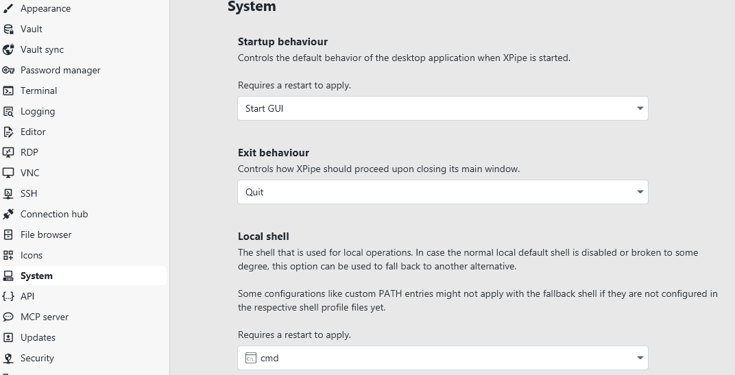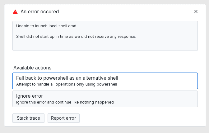 In case the initial XPipe startup succeeded, but you still receive occasional errors about a local shell that failed to start, there might still be a problem with the local system shell or its configuration. XPipe starts several instances of local shells for different components, so it might fail only for some.
